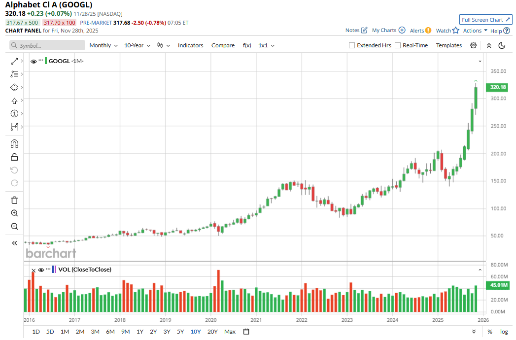 Valued at a market cap of more than $3.8 trillion, Alphabet stock has almost doubled in the past year due to its widening AI moat. The tech giant recently unveiled Gemini 3, its newest AI model that represents a major leap forward in the company's AI capabilities.