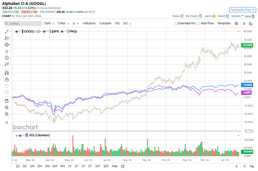 Shares of this internet media giant have outperformed the broader market over the past year. GOOGL has gained 66.5% over this time frame, while the broader S&P 500 Index ($SPX) has rallied nearly 13.9%. In 2026, GOOGL’s stock rose 6.5%, surpassing the SPX’s 1.5% rise on a YTD basis.