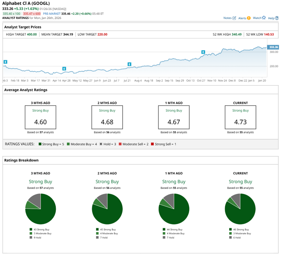 On Jan. 26, RBC Capital analyst Brad Erickson maintained a “Buy” rating on GOOGL and set a price target of $375, implying a potential upside of 12.5% from current levels.