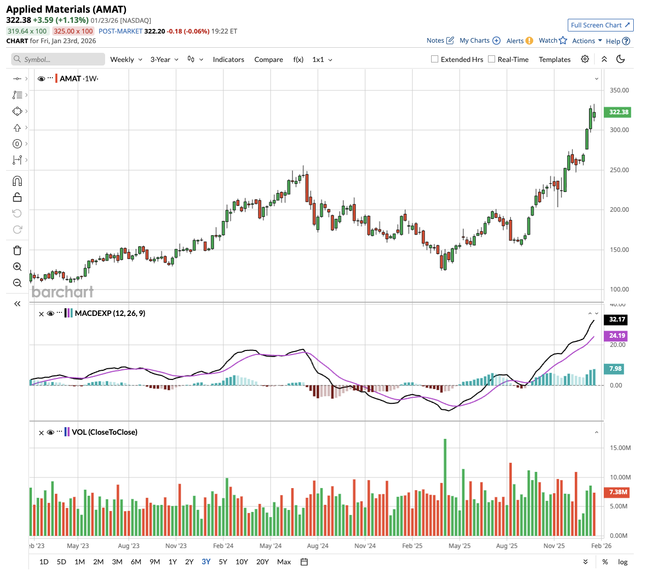 Valued at a market cap of $255 billion, AMAT stock has almost tripled investor returns in the past three years. At the time of writing, it trades at $319 per share.