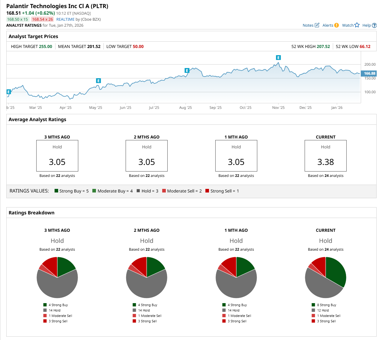 On Jan. 22, Phillip Securities analyst Alif Fahmi initiated coverage on PLTR with a “Buy” rating and set a $208 price target, implying a 23.4% upside potential from current levels..
