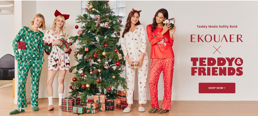As the holiday season approaches, home becomes synonymous with warmth and togetherness. EKOUAER and Arshiner understand this well and have specially launched a family home apparel series themed around soft teddy bear elements this year. Centered around the themes of "Twirl Into Holiday Season" and "Cheers to Cozy Holidays," they've incorporated adorable and cute teddy bear patterns into comfortable home wear, creating a festive look filled with childlike charm and love for the whole family, ensuring that tender family moments are protected by softness.