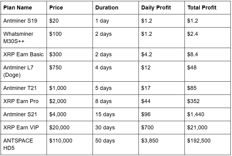 Step 2: Choose Your Mining Plan Select from 19 different mining contracts ranging from $20 to $150,000, based on your investment capacity and desired returns.
