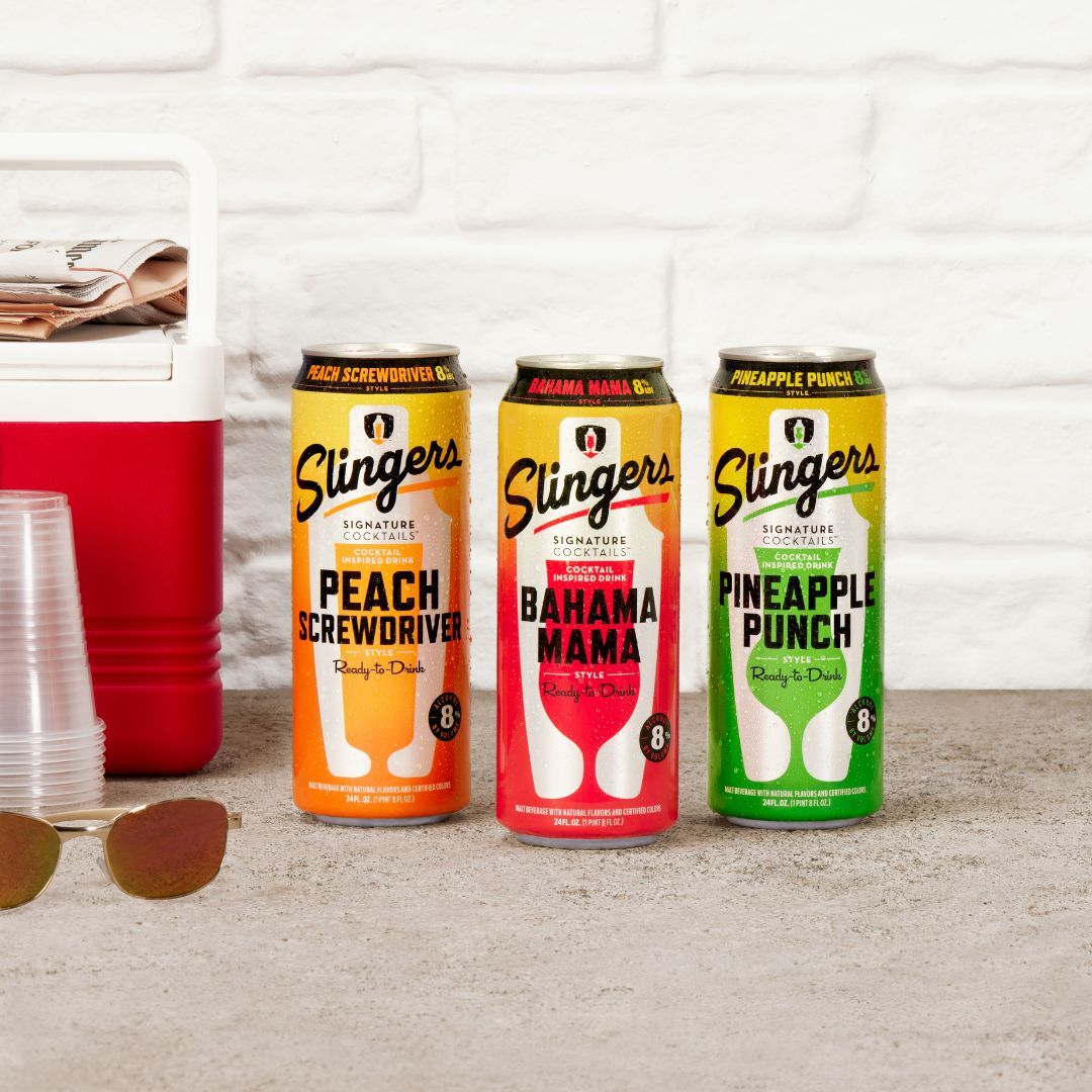 From The Boston Beer Company, makers of Samuel Adams, Truly Hard Seltzer, Twisted Tea, Angry Orchard and Dogfish Head, Slingers Signature Cocktails is a malt-based lineup of delicious, cocktail-inspired drinks in the convenience of 24-ounce cans. A relatable brand offering superior taste and 8% ABV, Slingers Signature Cocktails is the winning choice with three fun and recognizable flavors: Bahama Mama, Peach Screwdriver and Pineapple Punch. For more information, visit drinkslingers.com or follow Slingers Signature Cocktails on Facebook and Instagram. We Sling. You Drink!