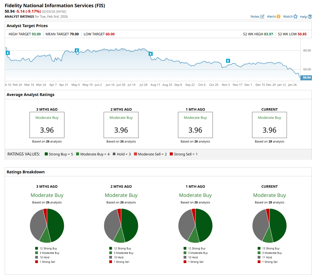 On Jan. 26, Cantor Fitzgerald initiated coverage of FIS with an “Overweight” rating and $72 price target, indicating a 41.3% potential upside from the current levels.