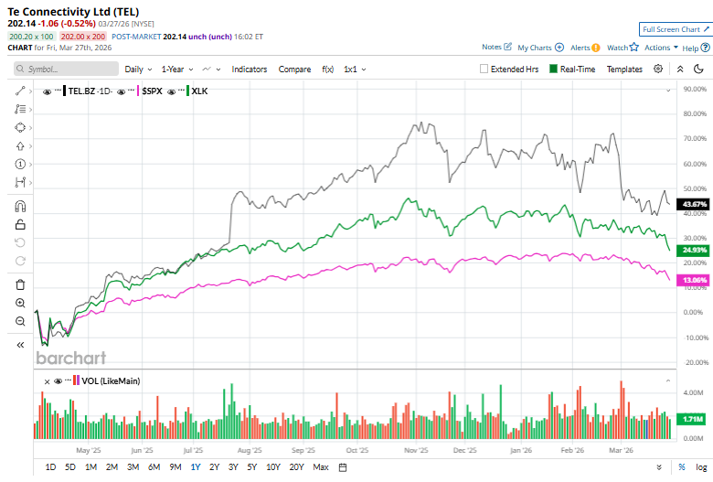 TEL has rallied 37.4% over the past 52 weeks, significantly outpacing both the S&P 500 Index's ($SPX11.9% return and the Technology Select Sector SPDR Fund’s (XLK22.9% uptick over the same time frame.