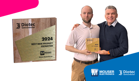 "We are very pleased to present Mouser with the Best New Product Promoter award," said Dr. Saverio Barboni, chief marketing and sales officer of Diotec Semiconductor. "Mouser's distribution is a key part of our channel strategy, and we look forward to many more years of successful collaboration."
