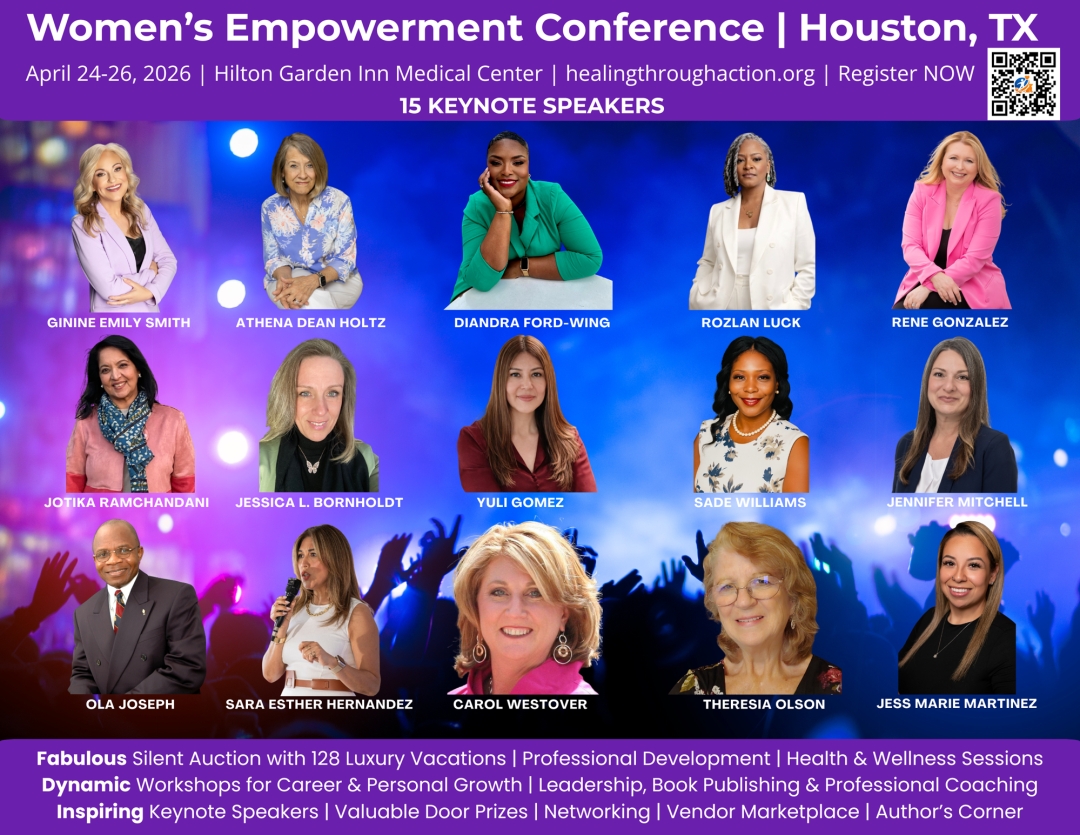 As part of its ongoing mission, Healing Through Action will host a transformative 3-day Women's Empowerment Conference in Houston, Texas, April 24-26, 2026, bringing together 15 inspiring keynote speakers, community leaders, and women from across the country for a powerful experience focused on healing, leadership, and personal growth. This Houston women's conference will feature personal and professional development workshops, survivor-led discussions, and hands-on opportunities—including publishing coaching to help women share and publish their personal stories—creating a unique space for connection, empowerment, and transformation.