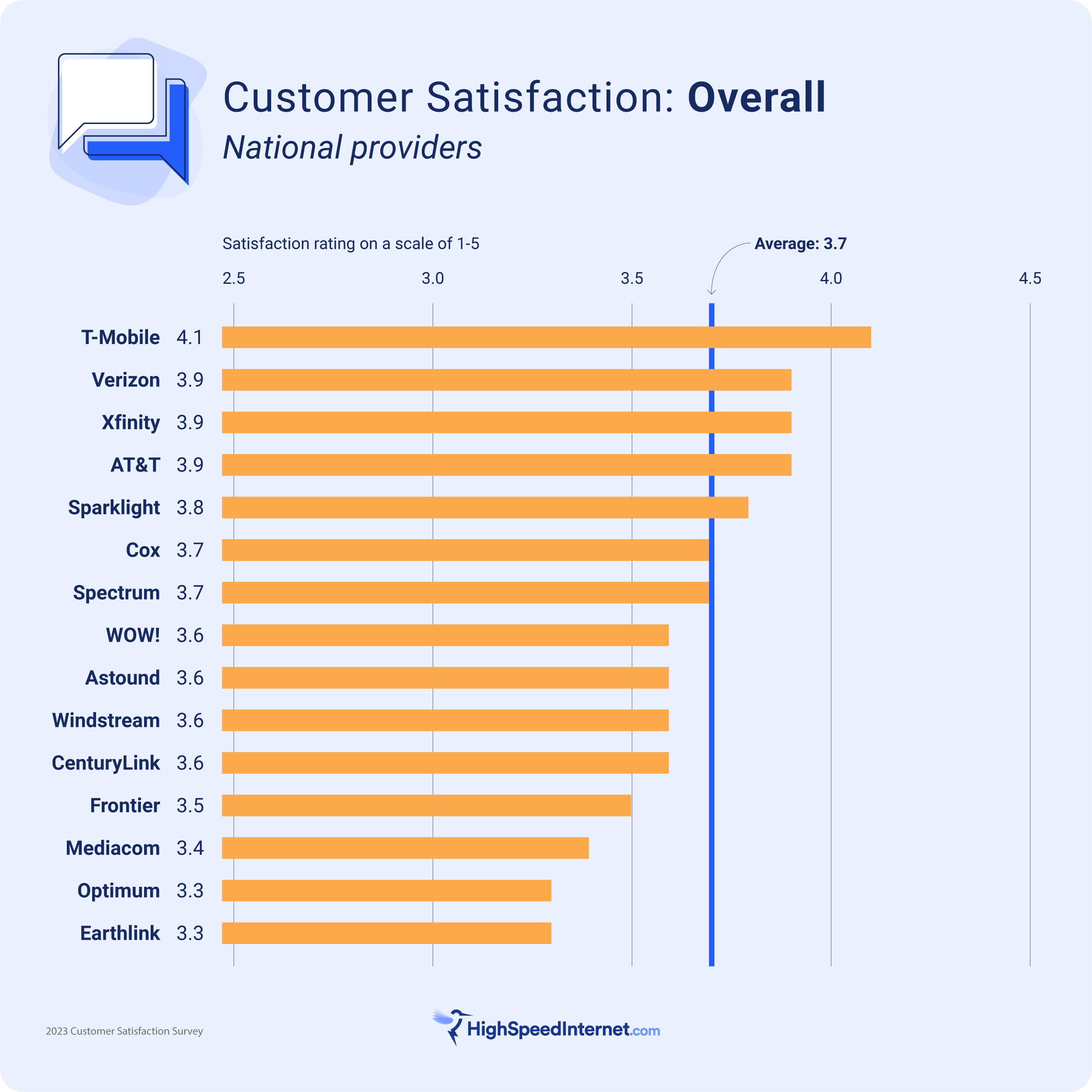 The survey methodology, as well as more findings and information, can be found in HighSpeedInternet.com’s 2023 Customer Satisfaction Report: highspeedinternet.com/resources/customer-satisfaction-survey.