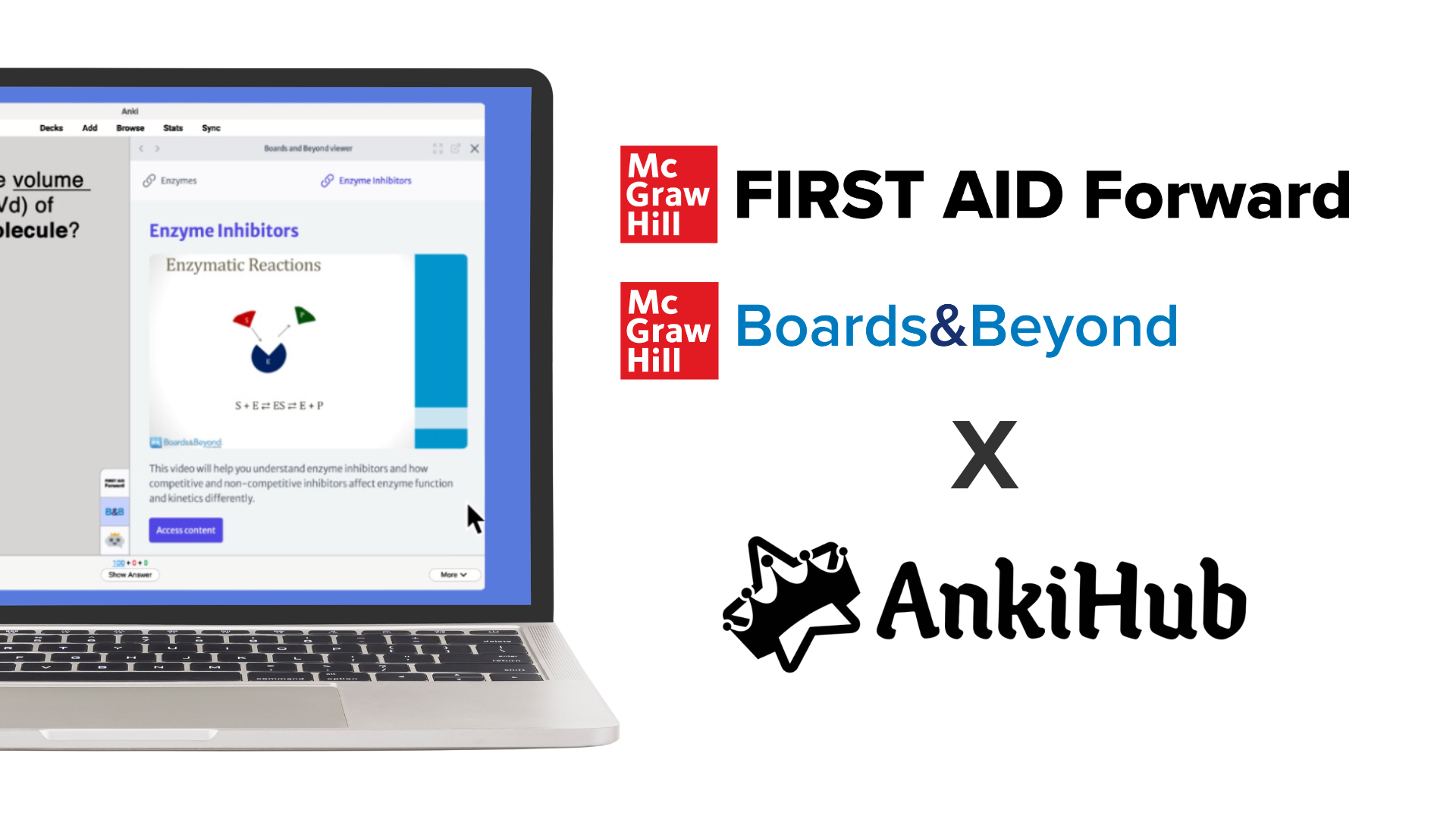 McGraw Hill’s integration into AnkiHub is now available. To access the resources, users will need active subscriptions to AnkiHub Premium, First Aid Forward and/or Boards & Beyond. Both First Aid Forward and Boards & Beyond offer a 7-day free trial for those who don’t already have a subscription.